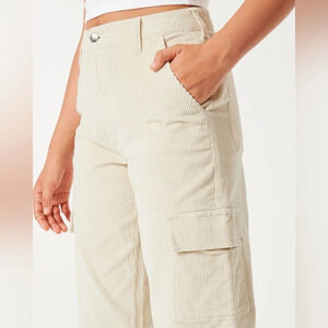 Hollister Ultra High-Rise Corduroy Baggy Cargo Pants Beige Off-White Size 30