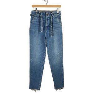 Hollister Ultra High-Rise Mom Jean SZ 5R 27/27 Vintage Stretch Belt Unique