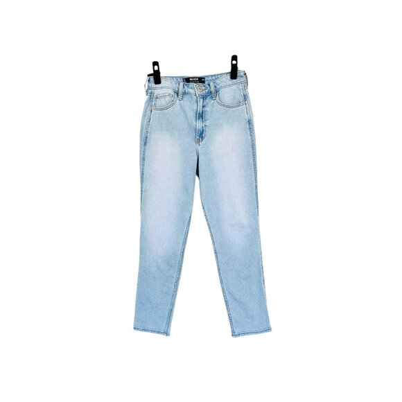 Hollister Light Wash Ultra High Waisted Contrast Topstitching Classic Five Pocket Styling Mom Fit Jeans Vintage Stretch Ankle Denim Size 26 Short - Excellent condition.