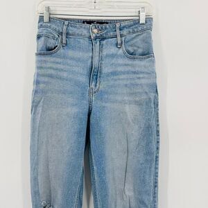 Hollister Ultra High Rise Dad Jeans Light Wash Blue Womens Size 5L Tall Ripped!!