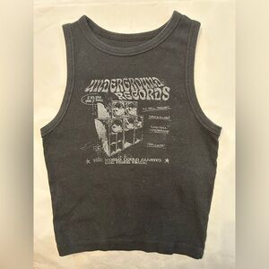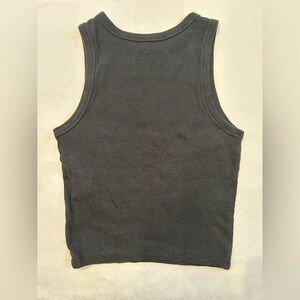 Stylish black tank top with a bold graphic design. Perfect for casual wear.