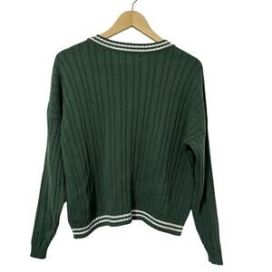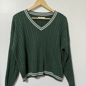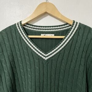 Hollister V Neck Cotton Pullover Cable Knit Sweater Size S Green Preppy Academia