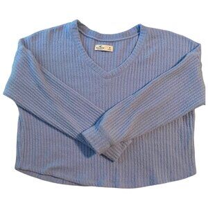 Hollister V-Neck Cropped Sweater, Baby Blue, Medium