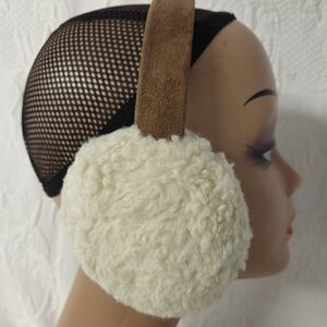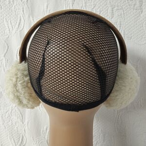 Hollister Vegan Fluffy Earmuffs Thick Cream Brown Headband Winter Warm Patch