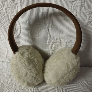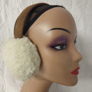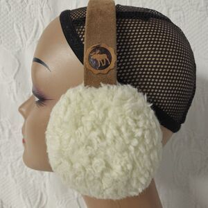 Hollister vegan fluffy earmuffs. Faux wool fur Thick round cream colored ear coverings. Brown felt flexible headband to help fit most head sizes. Hollister moose patch on the outer side. Perfect for warm winter looks.