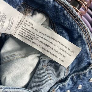 Size 9R. Functional front and back pockets. Front zipper with triple button enclosure. Rolled cuff hem. Medium wash.