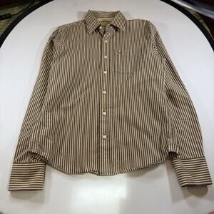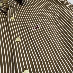 Hollister Vintage Y2K Logo Striped Oxford Button Shirt Brown Mns Medium