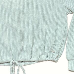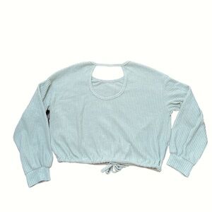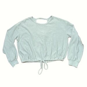 Hollister Waffle Knit Top Cinch Tie Waist Sea foam/ Mint Round Neck Open Back