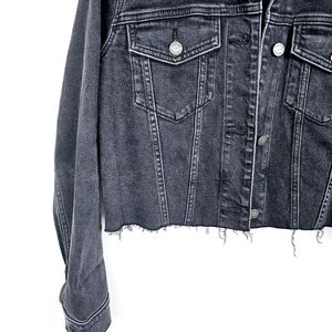 Hollister Washed Out Black Semi-Cropped Frayed Denim Jean Jacket