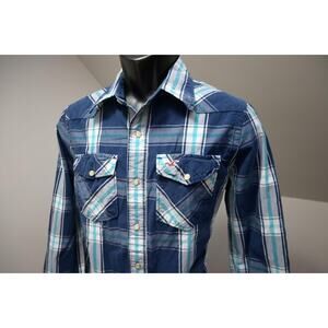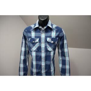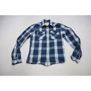 Hollister Western Pearl Snaps Cowboy Shirt Plaid Long Sleve Mens Size Medium
