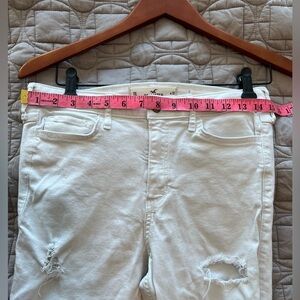 Womens' white distressed, high-rise skinny jeans by Hollister.
