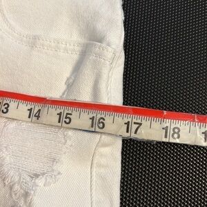 High Rise vintage stretch distressed white denim skirt frayed hem comfortable fit pre owned like new condition