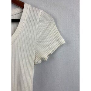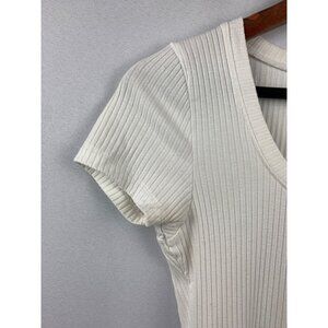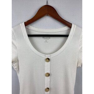 Hollister White Ribbed Button-Front Short Sleeve Top Size S