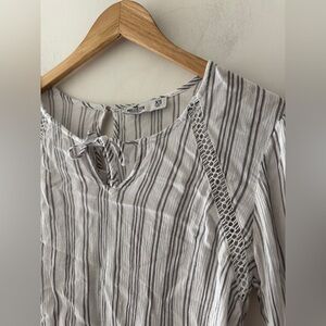 Hollister White Striped Long Sleeve Lace Detail Top Long Sleeve Blouse