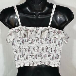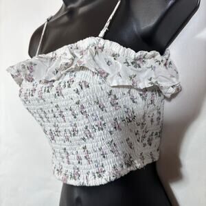 Hollister White and Purple Floral Tube Top Ruffle Smocked Removable Strap Medium