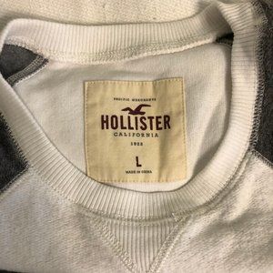 Hollister White/Gray Raglan Crew Sweater (Large)