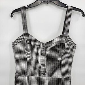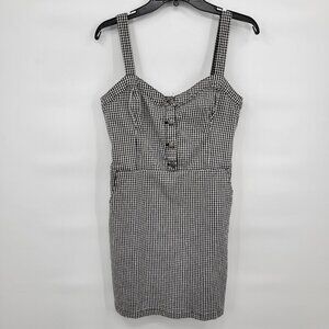 Hollister Women Black White Gingham Strap V Neck Sleeveless Dress Size Large