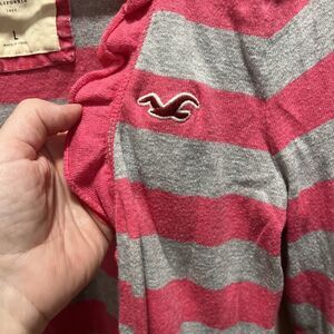 Hollister Women Y2K Pink Gray Cotton Cardigan Ruffle L Coquette 90s Indie Retro