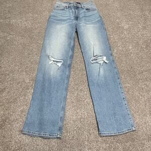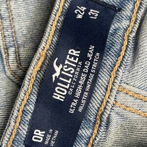 Hollister Women ultra high rise dad jean sz 0R 24x31 distress light wash stretch