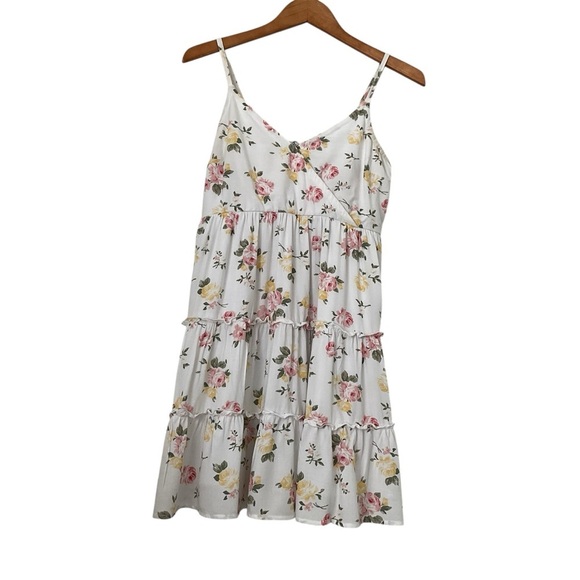 Hollister Tiered Dress Sz M Multicolor Floral Ruffle V-Neck Boho Cottagecore