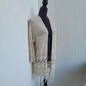 Hollister Women's Beige Knit Open Front Long Sleeve Fringe Cardigan Size Medium