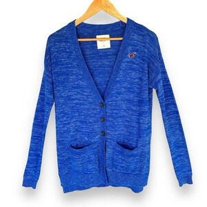 Hollister Women's Blue Knit Long Line Open Front Cardigan Sweater Size Small