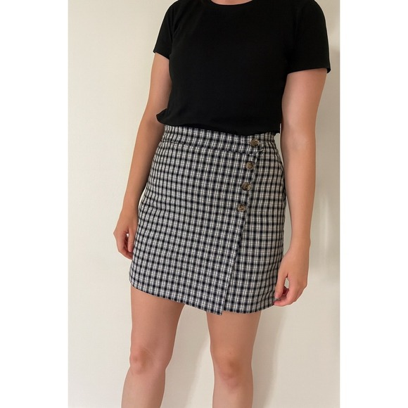 Keywords: Hollister, skirt, blue, plaid, high-rise, stretch fabric, button detailing, casual, women's fashion, pencil skirt, short skirt, pre-owned.