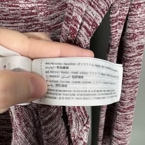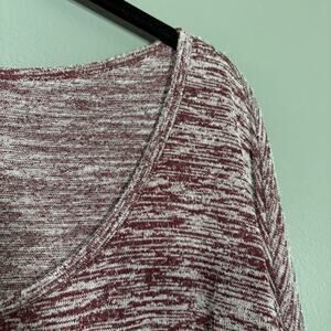 Women's y2k cozycore knit top by Hollister. This casual marled burgundy top has long sleeves, a scoop neck, and a slightly cropped length. It is a polyester, viscose, elastane blend.