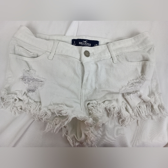 Elevate your casual style with Hollister's white distressed denim shorts. Perfect for a relaxed, trendy look.