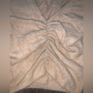 Hollister Women's Beige Tan Fuzzy Soft Knit Ruched Front Crop Sweater . Size medium. NWT