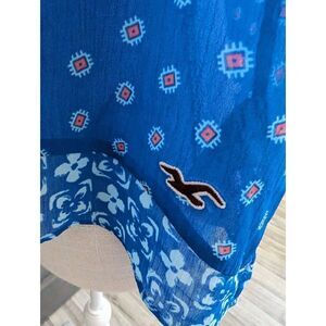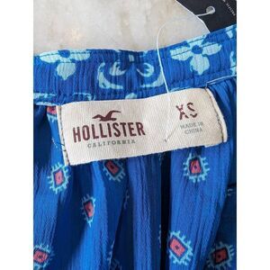 Hollister Women's Floral Boho V Neck Ruffled Short Sleeve Top Bright Blue XS New