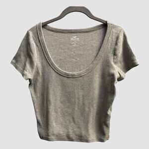 Hollister Women's Gray Ribbed Top Must Have Collection Scoop Baby Tee Soft LG