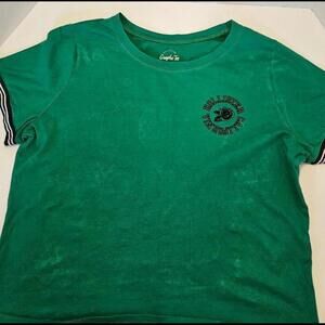 Hollister Women's Green Graphic Tee with Striped Sleeves Size Large