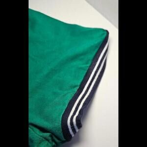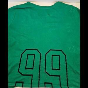Elevate your casual wardrobe with this stylish Hollister graphic tee in vibrant green. Perfect for everyday wear, this top features a unique floral logo print and striped detailing on the sleeves for a trendy touch. Made from soft, breathable fabric, it's designed for comfort and versatility. The relaxed fit pairs well with jeans or shorts, making it a great choice for any season. Key features include: - Brand: Hollister - Color: Green - Striped sleeve details - Floral logo design - Relaxed fit for all-day comfort. Large number 99 on the back of the shirt.