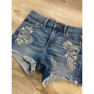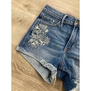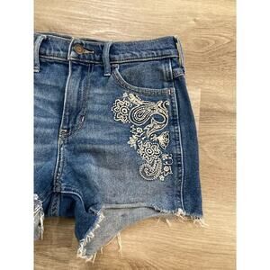 Hollister Women's High-Rise Denim Shorts Size 1 Blue Floral Embroidered Distressed