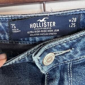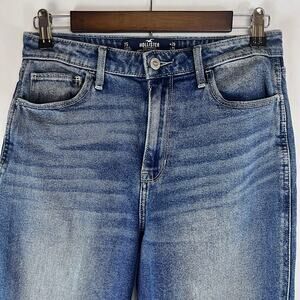 Hollister Women's Jeans Size 7s Ultra High Rise Mom Blue Distress Denim
