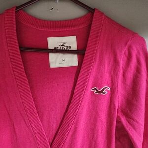 Hollister Womens Long Sleeve Cardigan Knit Sweater Fuchsia Size Large