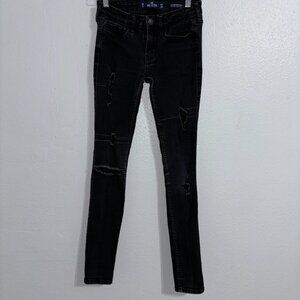 Hollister Women’s Low-Rise Super Skinny Jeans W24 L30 Black Distressed Ripped