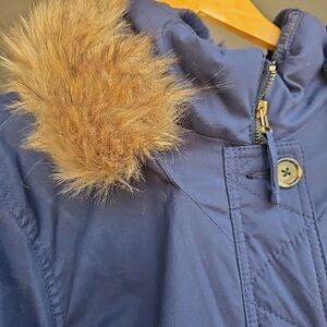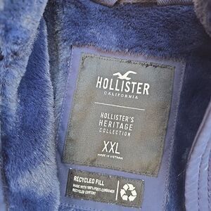 Hollister heritage collection Womens Parka Coat XXL Heavy TEDDY Lined Winter Navy Blue Faux fur lined, removable hood trim. Trim comes off for washing.