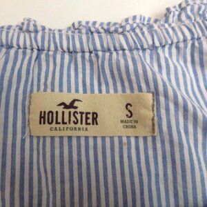 Hollister Womens Ruffle Top Size Small Shirt Blouse Striped Blue & White Bow