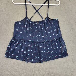 Hollister Women's Shirt Size Large Blue Sheer Chiffon Cropped Spaghetti Strap Popsicle