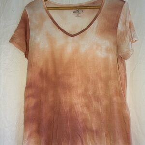 Hollister Women’s Short Sleeve Tie Dye Orange/Pink/White Top size Medium