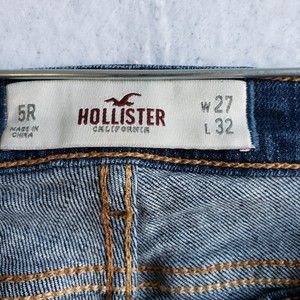 Hollister Womens Size 5R W27L32 Jeans Blue Denim Dark Wash 5 Pockets Factory Ripped Torn Very good pre-owned condition. Observe photos well for details.