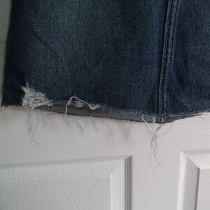 This skirt is pre-owned but is still in good condition with lots of life left. It has a raw hem that is distressed and has some fraying. This is how it is made. Size 9 - measures 28"-29" in waist and length is 17". Has double button & zipper closure. Belt loops. Front and back pockets.