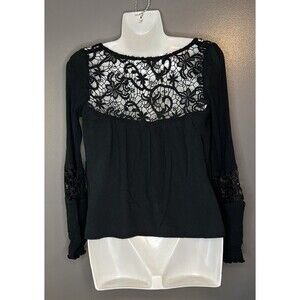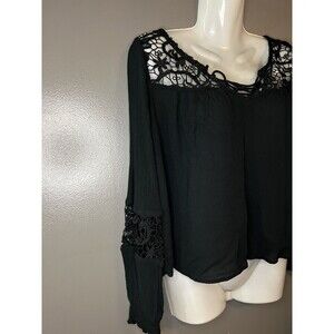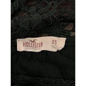 Hollister Women's Size XS Black Crochet Lace Scoop Neck Long Sleeve Cropped Top