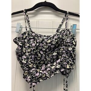 Hollister Women’s Sleeveless Floral Stretch Tie Front Crop Bare Cinched Cami Top