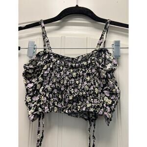 Hollister Women’s Sleeveless Floral Stretch Tie Front Crop Cami Top Sz XS Black