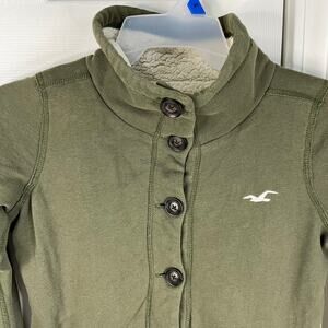 Hollister Womens Small Army Green Sherpa Lined Short Jacket Button Front