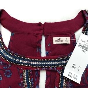 Hollister Womens Small Burgundy Floral Print Halter Fly Away Top Beaded Key Hole Neckline NWT