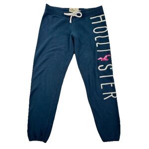 Hollister Women’s Small Navy Blue Jogger Sweatpants Logo Sequin Bird Drawstring